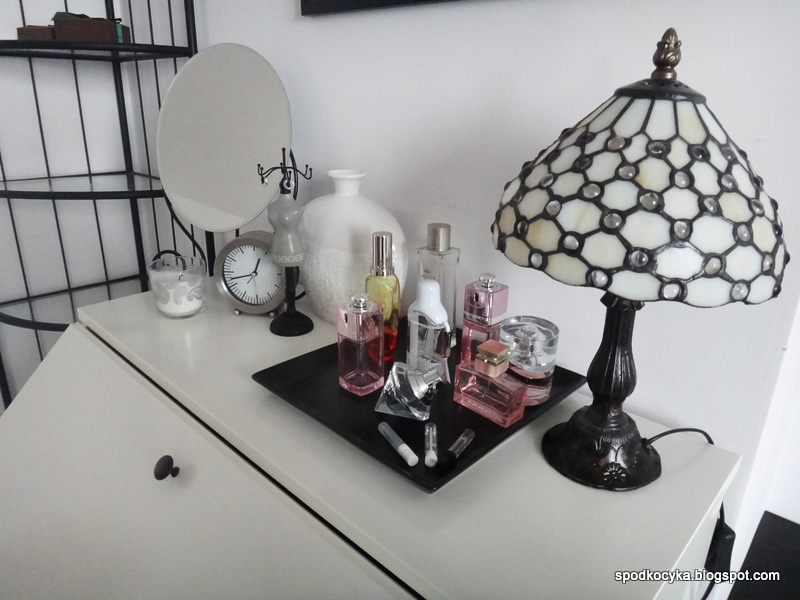 Na ten moment na moim stoliku stoi śliczny, witrażowy prezent ślubny, a mąż zadowala się doczepiana lampką z IKEI.
