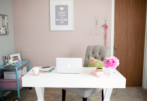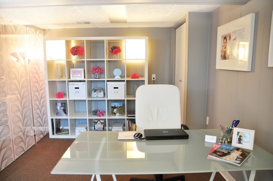 Różowi w biurze mówię stanowcze nie, ale moja pani ma podobny gust do wnętrz. Mi podoba się połączenie ciemnych ścian i jasnych mebli. Jest prosto, oficjalnie i nowocześnie 🙂